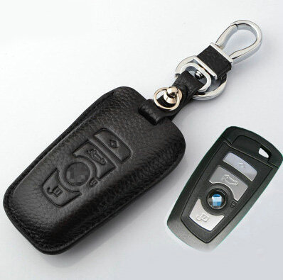 | Simple Genuine Leather Auto Key Bags Smart for BMW 320i - Black |