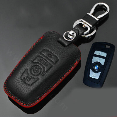 Simple Genuine Leather Auto Key Bags Smart for BMW 525Li - Black Red This item will be shipped from China