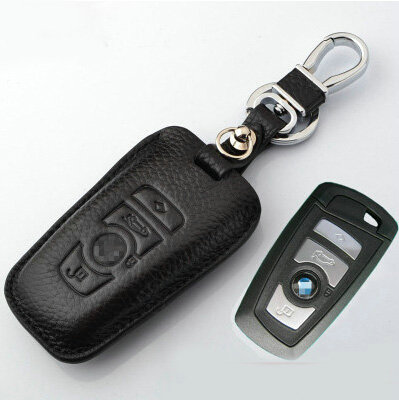 Simple Genuine Leather Auto Key Bags Smart for BMW 528i - Black This item will be shipped from China