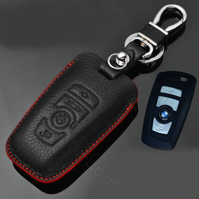 Simple Genuine Leather Auto Key Bags Smart for BMW 745Li - Black Red This item will be shipped from China