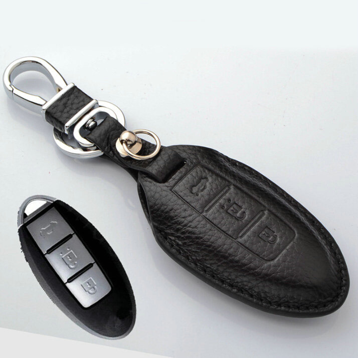 | Simple Genuine Leather Auto Key Bags Smart for Nissan TEANA - Black |
