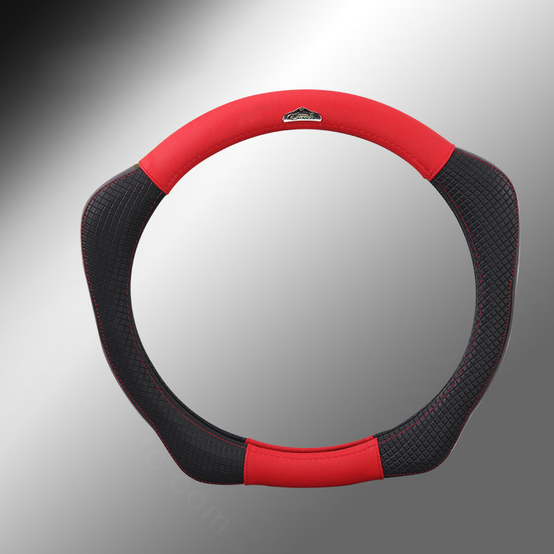 Sports Version Genuine Leather Grip Car Steering Wheel Covers 15 inch 38CM - Red Black This item will be shipped from China