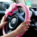 | Sweet Girl Flower PU Leather Car Steering Wheel Covers Diamond 15 inch 38CM - Pink |