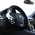| Top Crytsal Plush Car Steering Wheel Covers Pearl Camellia for Women 15 inch 38CM - Black |