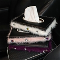 Top Grade Diamond Leather Car Tissue Paper Box Case Pink Plush Crystal For Office Home Decor - Black This item will be shipped from China
