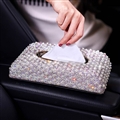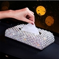 CODE:0006773919022019 NAME:Top Grade Diamond Pearl Car Tissue Paper Box Case Plush Crystal For Office Home Decor - White