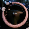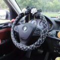 Top Quality Pearl Tassel Flower Linen Vehicle Steering Wheel Covers 15 inch 38CM - Black White This item will be shipped from China