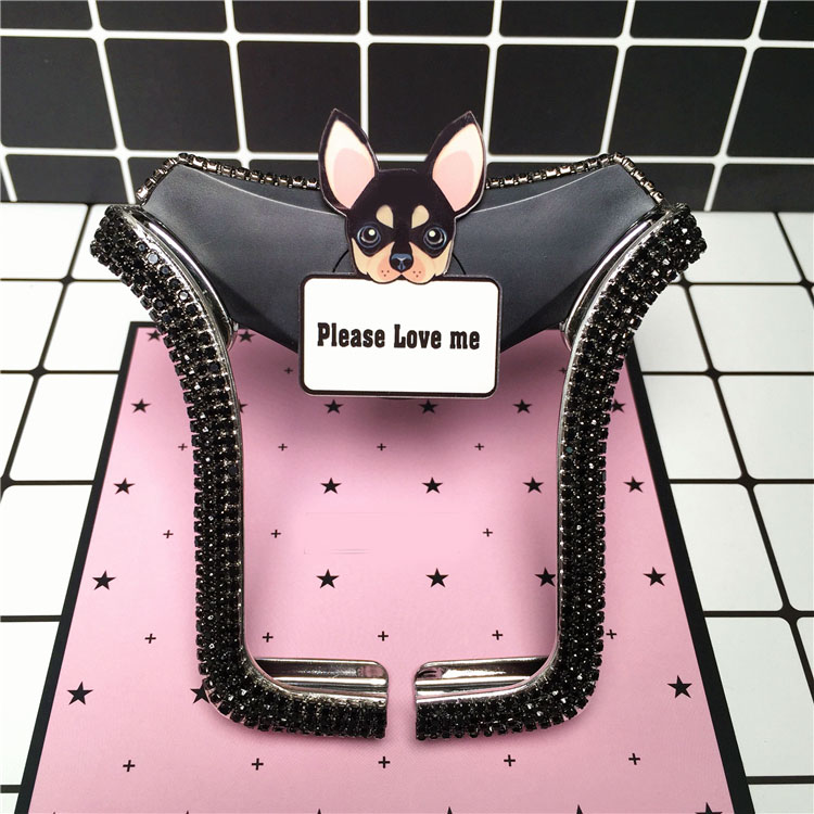 CODE:0006750822012019 NAME:U Shape Universal Car Mobile Phone Holder Crystal Cute Puppy Air Vent Mount Clip Stand GPS - Black