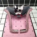 U Shape Universal Car Mobile Phone Holder Crystal Glasses Puppy Air Vent Mount Clip Stand GPS - White