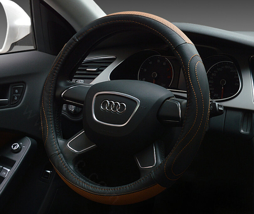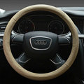 Unique Auto Steering Wheel Wrap Genuine Leather 15 Inch 38CM - Beige This item will be shipped from China