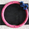 | Unique Diamond Feather Flowers Car Steering Wheel Covers Genuine Leather 15 inch 38CM - Rose |