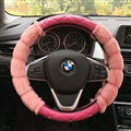 Unique Diamond Pink Velvet Car Steering Wheel Covers PU Leather 15 Inch 38CM - Pink