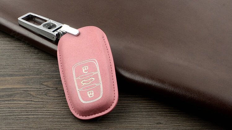 Unique Genuine Leather Key Ring Auto Key Bags Smart for Audi A6L - Pink This item will be shipped from China