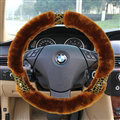 Unique Leopard Print Car Steering Wheel Wrap Velvet 15 Inch 38CM - Brown This item will be shipped from China