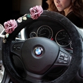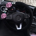| Vintage Women Crystal Rose Car Steering Wheel Covers Plush 15 inch 38CM - Black |