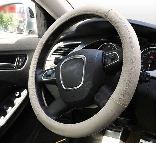 Yapoo Auto Car Steering Wheel Cover leather Splice Diameter 16 inch 40CM - Beige This item will be shipped from China
