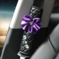 1pcs Car Safety Seat Belt Covers Elegant Crystal Flower Leather Shoulder Pads Accessories - Purple