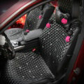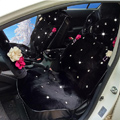 Top Crystals Plush Car Seat Cushion for Women Winter Universal Flower Covers 10pcs Sets - Black