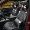Sweety Flower Crystal Leather Car Seat Cushion Universal Auto Seat Covers 10pcs Sets - Black