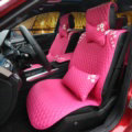 Top Crystals Plush Car Seat Cushion for Women Winter Universal Flower Covers 10pcs Sets - Rose