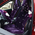 Top Crystals Plush Car Seat Cushion for Women Winter Universal Flower Covers 10pcs Sets - Purple