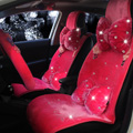 Top Crystals Plush Car Seat Cushion for Women Winter Universal Lace Covers 10pcs Sets - Red