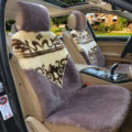Luxury Leopard Pure Wool Car Seat Cushion Universal Sheepskin Fur Pads 5pcs Sets - Bean Paste