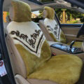Luxury Flower Pure Wool Car Seat Cushion Universal Sheepskin Fur Pads 5pcs Sets - Bean Paste