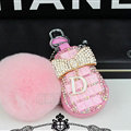 Luxurious Universal Crystal Genuine Leather Auto Key Bags White Fur Ball Key Chain - Pink