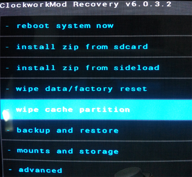 Step 7 - Then, perform a cache wipe by selecting "wipe cache partition" as you can see in the image below.