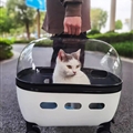 Draw Bar Box Trolley Foldable Pet Stroller Metal Breathable PC ABS Cats Dogs Bags Storage Basket Travel Outdoor Portable - White