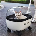 | Draw Bar Box Trolley Foldable Pet Stroller Metal Breathable PC ABS Cats Dogs Bags Storage Basket Travel Outdoor Portable - White |