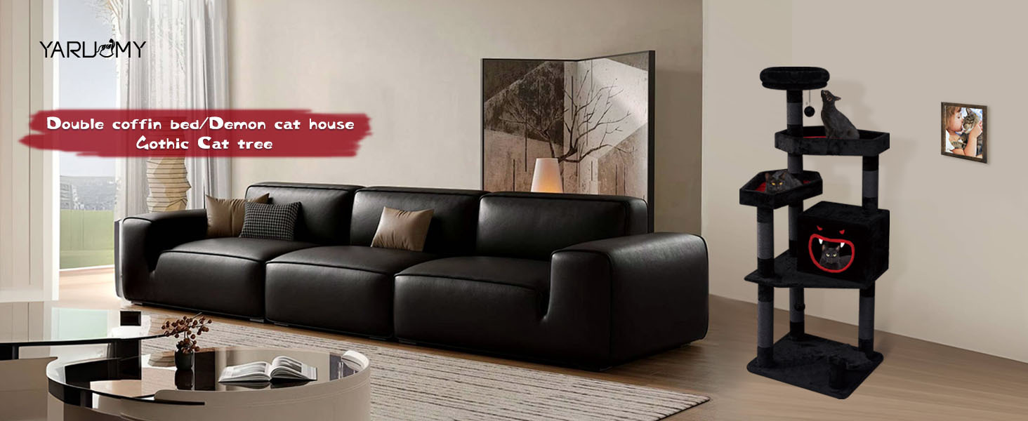 | Halloween Cat Villa Cat Tower Big Cats Climbing Tree Cat Condo Scratching Post Multi-Level Large Cat Climbing Capsule - Black |