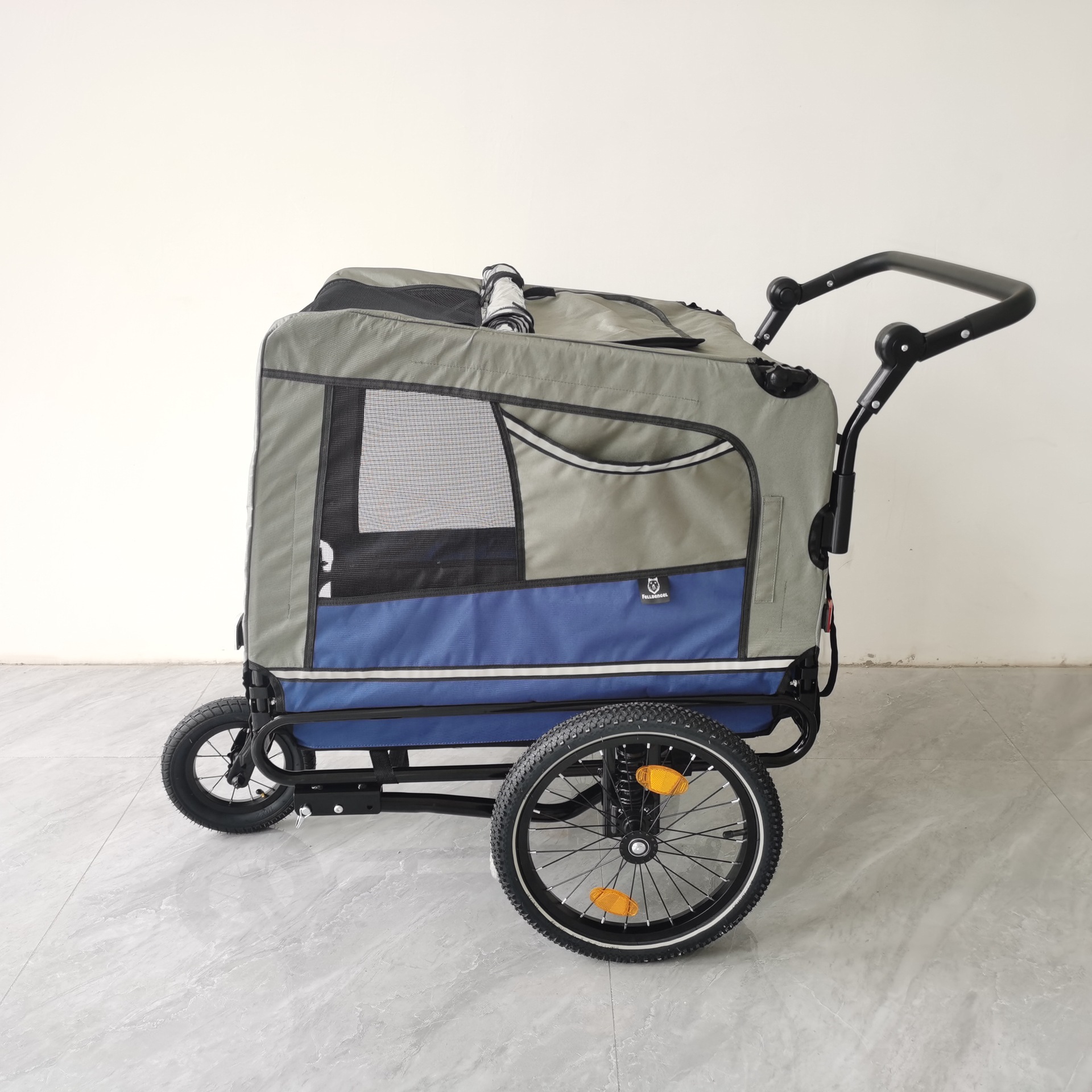 CODE:0007615518082024 NAME:Outdoor Safe Carriers Strollers Large Pet Bike Trailer Foldable Cat Dog Handcart Tricycle Dual-use Outdoor Camping Luggage - Blue Grey