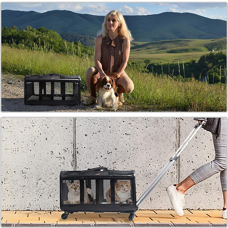 | Transport Carrier For 2 Cats Handbag Large Cats Pet Polyester Zipper Closure For Cats Dogs Bags Ideal For Travel Outdoor Use - Black |
