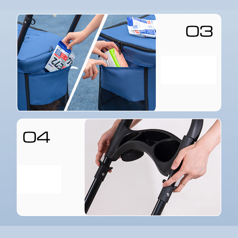 Trolley Foldable Pet Stroller Metal Breathable Mesh Removable Cats Dogs Bags Storage Basket Travel Outdoor Oxford - Black