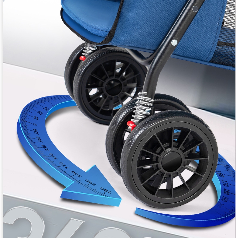 * ULTIMATE PET COMFORT - Your pet deserves unparalleled comfort. With a comfy, waterproof pad and breezy mesh cover, our versatile doggie stroller transforms into a cozy haven. Whether facing the bustling city or retreating from it, your pet's comfort is ensured. Ideal for 2 small dogs or cats, even a 25 lb frenchie is royalty in this rolling pet carrier.