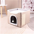 NAME:Wooden Washable Pet Stool Pet Bed Indoor For Cats Foldable Cat House With Cat Toy And Storage Stool - Khaki