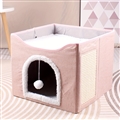 NAME:Wooden Washable Pet Stool Pet Bed Indoor For Cats Foldable Cat House With Cat Toy And Storage Stool - Pink