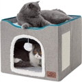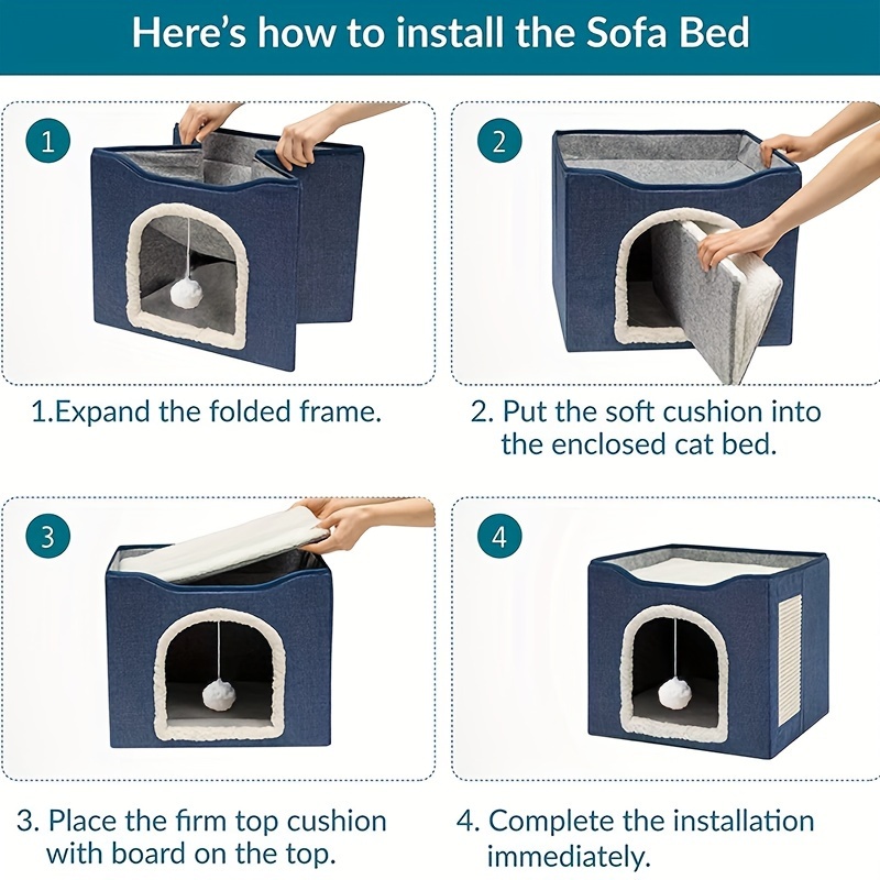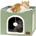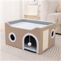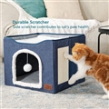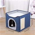 NAME:Wooden Washable Pet Stool Pet Bed Indoor For Cats Foldable Cat House With Cat Toy And Storage Stool - Round Beige