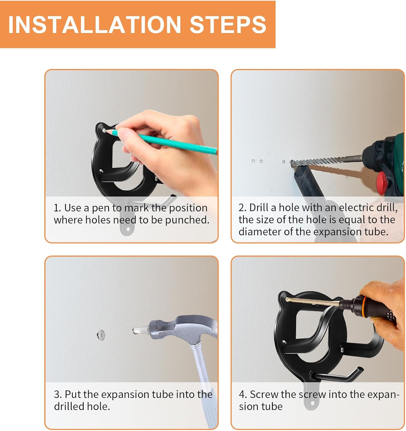 NAME:Horse Bridle Rack Bracket Hooks Tubes Screw Tack Storage Halter Hanger Metal Holder Room Blanket Wall Mount - Black 12 Counts